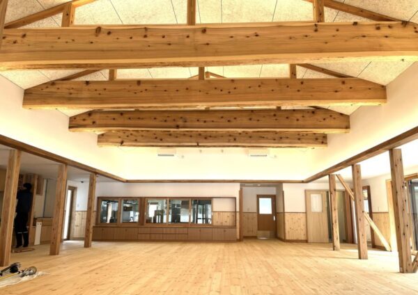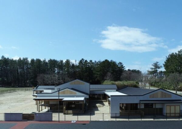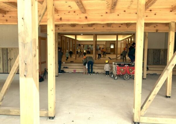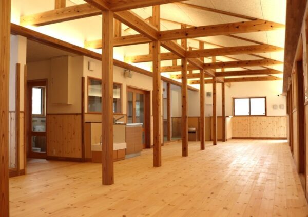 子ども環境のスペシャリストである建築家Integral Design Studio井上寿氏との共同設計。園の基本理念にある“生きる喜びを感じる”ことができる園舎を目指した。誰もが気軽に立ち寄れる一時保育室。子どもたちの多様な活動を保障する自由度の高い室内空間。半屋外のテラス・土間が園庭との一体性を高める。床材は松無垢材、腰壁は杉無垢材、外壁はしらす壁、土間は本物の三和土を採用。