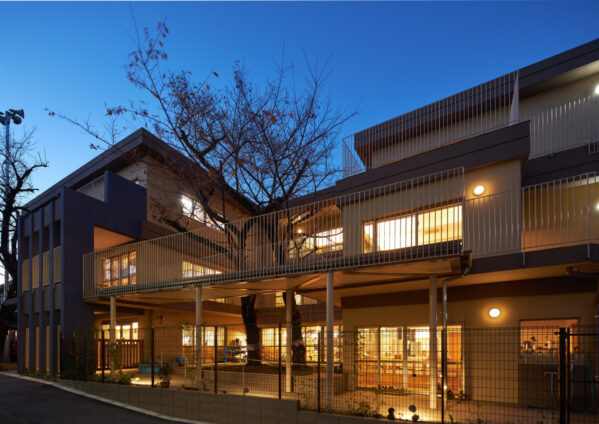 池袋駅近くの認可保育園の建替え計画。Integral Design Studio 井上寿氏との共同設計。既存園舎と樹木を残しながら新園舎を建てるという大きな制約の中、桜の大木2本を囲う中庭はじめ、多彩で豊な空間を実現した。幼児室は異年齢保育を取り入れた保育室となっている。 2020年には既存園舎解体跡に園庭づくりがスタートする。